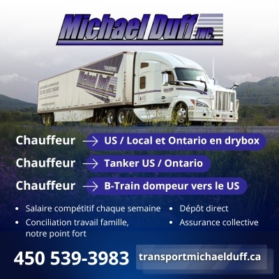 - M&M Transvrac est à la recherche de Chauffeurs pour le transport en Vrac – Abitibi, Témiscamingue, Baie-James, le nord de l’Ontario et Hamiltonon Avr 21, 2026 at 8:15 pm