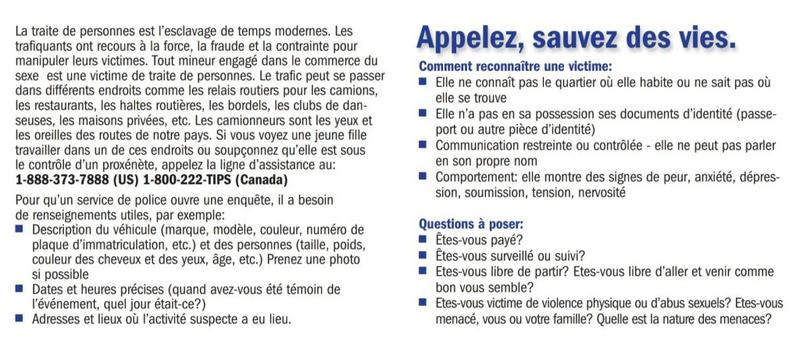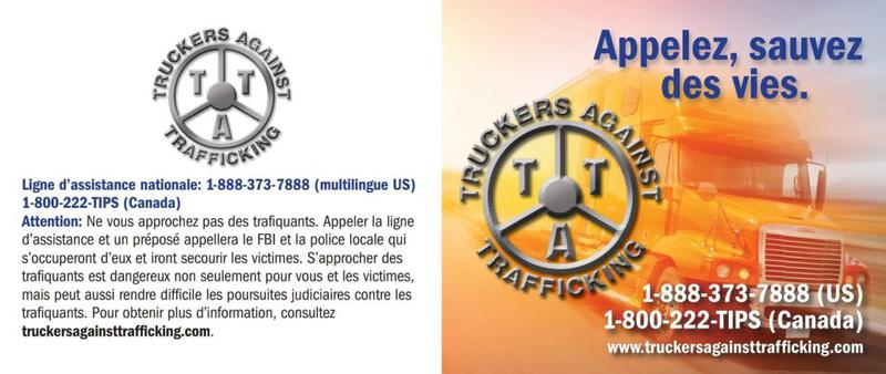 Les camionneurs sont les yeux et les oreilles de nos routes… et plusieurs d’entres eux sont devenus des héros en dénonçant à la police des comportements suspects de femmes ou jeunes filles qui se prostituaient dans les « truck stops », qui étaient alors sous l’emprise du trafic humain. Ces routiers ont même, dans certains cas, aidé à démanteler des réseaux!