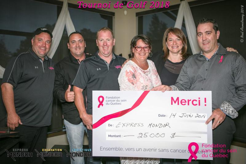 Depuis cinq ans, Express Mondor contribue à la recherche et au soutien aux personnes atteintes du cancer du sein en appuyant la Fondation du cancer du sein du Québec. Cette année, l’événement a permis de récolter la somme de 25 000$, pour un total de plus de 130 000 $ remis à la Fondation depuis le premier tournoi.