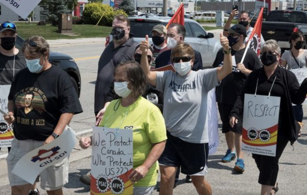 Plus de 8 500 travailleurs de l’Agence des services frontaliers du Canada pourraient déclencher la grève le 6 août prochain indique l’Alliance de la Fonction publique du Canada (AFPC) et le Syndicat des Douanes et de l’Immigration (SDI).