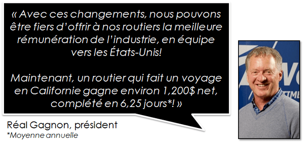 « Ces grandes nouvelles nous apportent de l’optimisme pour l’avenir. Grâce à l’implication, l’engagement et la confiance de notre équipe, nous avons fait 25 ans de route ensemble et nous sommes aujourd’hui la meilleure entreprise de l’industrie pour rouler en équipe vers les États-Unis. » Réal Gagnon président.
