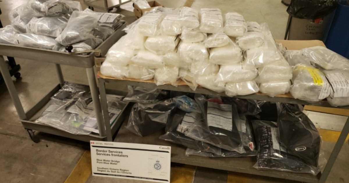 Le 13 janvier 2022, Arshdeep Singh, un conducteur de camion de transport commercial, s’est présenté au poste d’inspection primaire du pont Blue Water à Point Edward, en Ontario. Les agents des services frontaliers ont remarqué de gros sacs à ordures et des pneus de rechange dans le véhicule de l’homme de 23 ans résidant à Québec. On y a retrouvé 265 kg d’héroïne, de 2 C–B (communément appelée cocaïne rose) et de méthamphétamine.