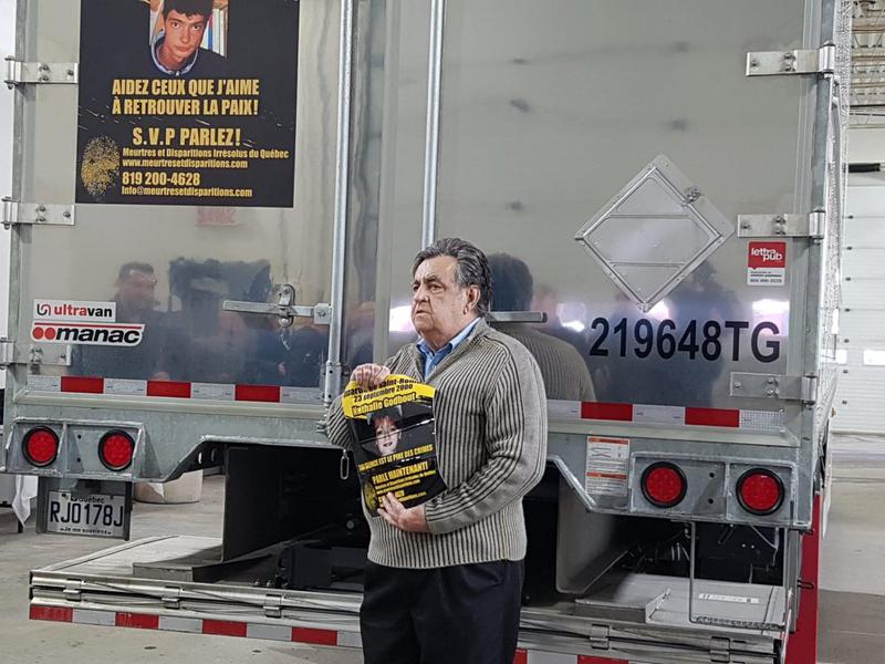 Monsieur Gilbert Thibault et Madame Myrtha d’Amours, propriétaires et fondateurs de Transport Gilmyr, ont pris la décision d’appuyer la cause de Meurtres et disparitions irrésolus du Québec et de procéder à l’installation d’affiches sur leurs remorques afin de faire connaître le visage des victimes à grande échelle. En effet, ce sont maintenant des milliers d’usagers de la route qui verront les affiches à travers le Québec, les Maritimes et les États-Unis.